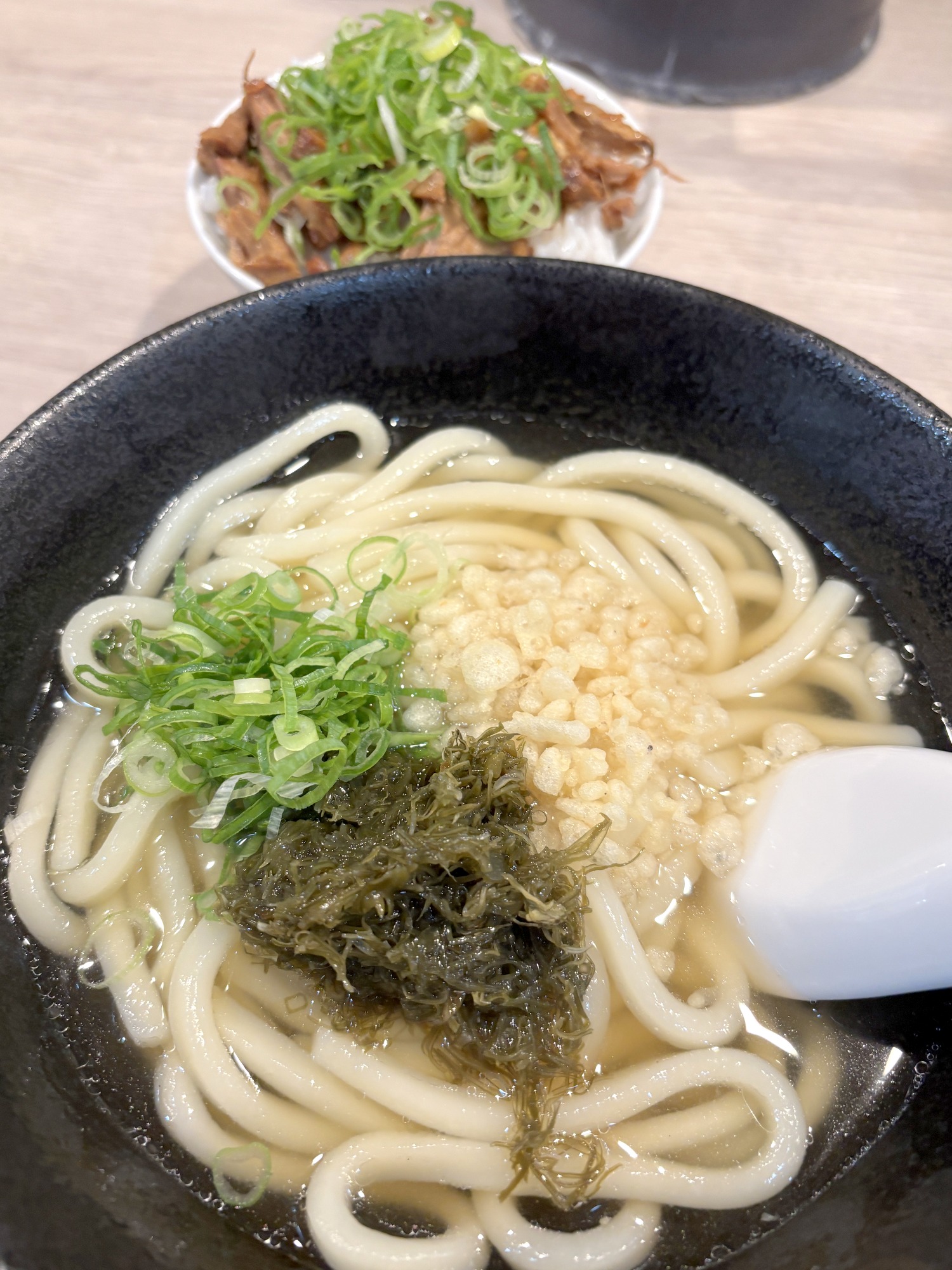 日替わりで、温かい昆布うどん(ミニ丼とセットで600円)を注文。